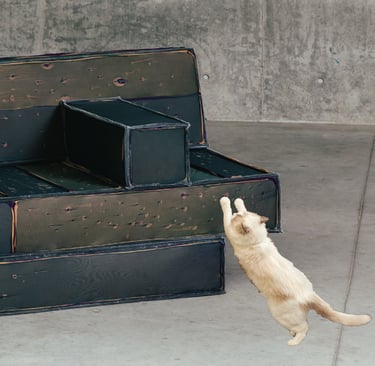 PiCatSofa embraces the natural wear and tear caused by cats, transforming their scratching instincts into an integral part of the design. Rather than seeing scratches as damage, this project reinterprets them as a form of artistic contribution, allowing the sofa to evolve over time. By integrating the natural behavior of cats into the design process, PiCatSofa creates a living piece of furniture that gains character with each mark, demonstrating how collaboration with non-human species can lead to creations that are dynamic, sustainable, and genuinely shared: a home object that lets cats be cats, and rewards humans with something utterly one of a kind.